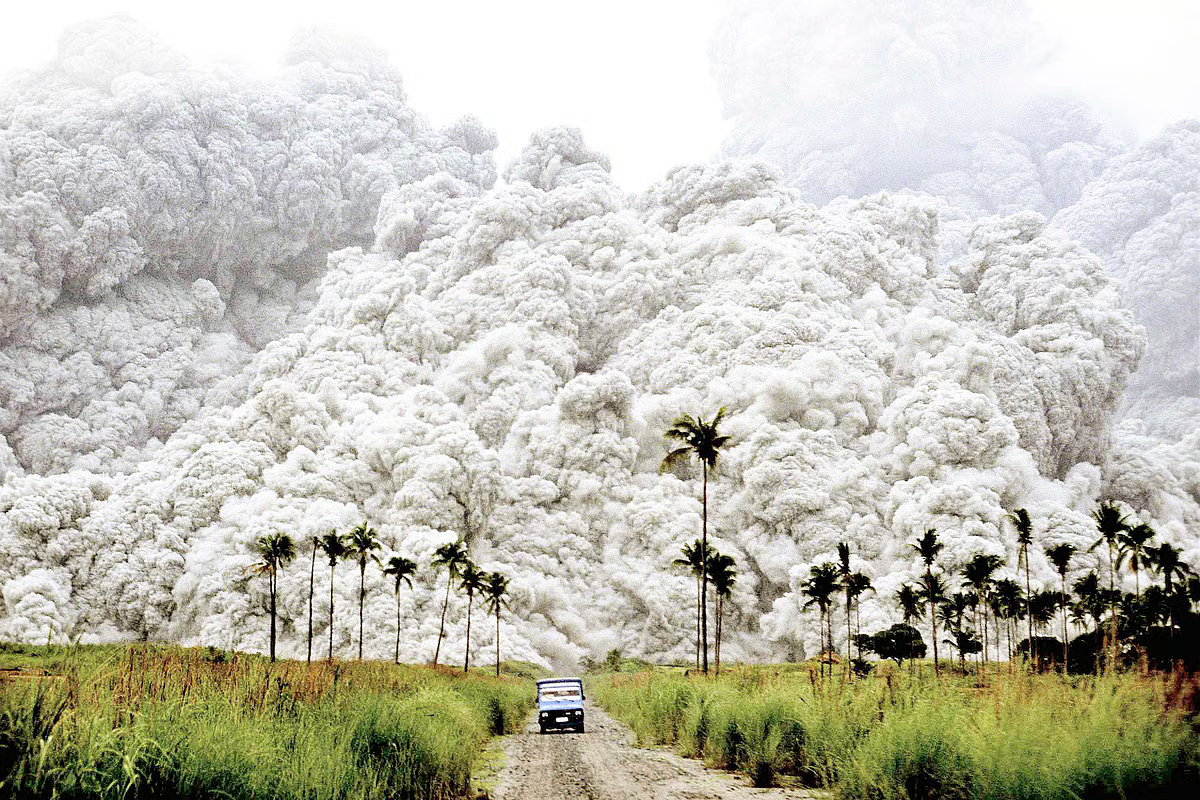 Right: The final massive eruption of Mount Pinatubo among a series of eruptions in June 1991, photo by Albert Garcia (source: Daily Tribune PH).